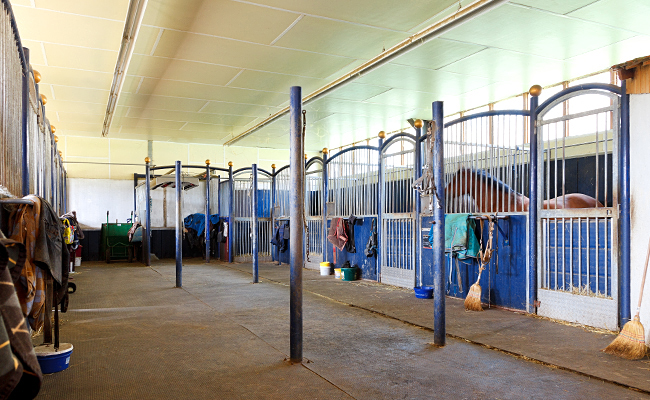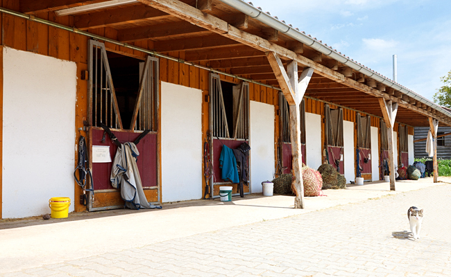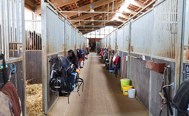Die Pferdeboxen verteilen sich auf verschiedene Stallgebäude mit unterschiedlich gestalteten Pferdeboxen.